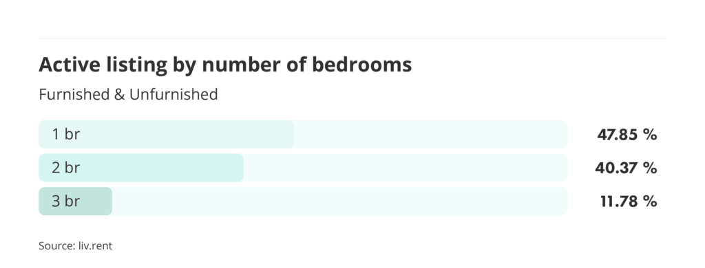 Active listings by number of bedrooms