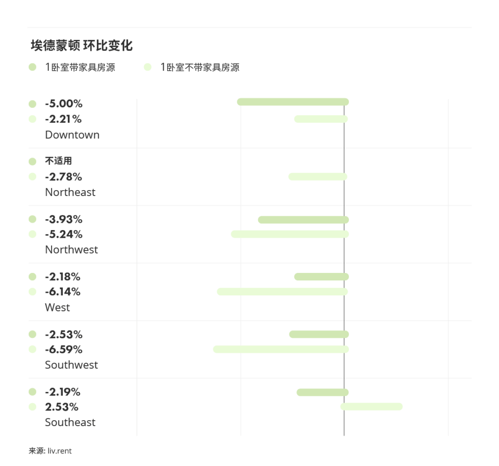 下图为埃德蒙顿地区租金环比变化。