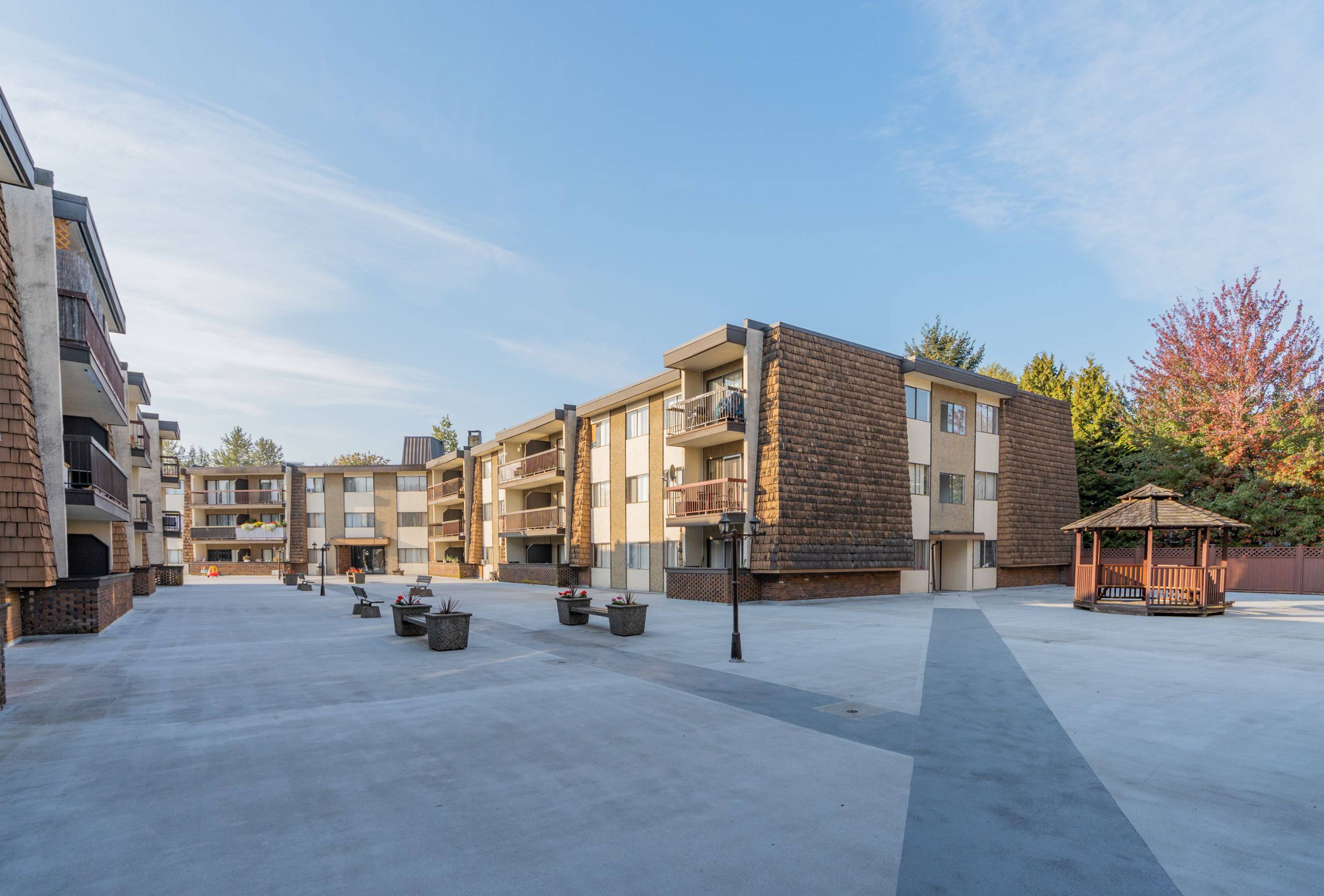 Hampton Place features a large community courtyard and is close to a fitness facility, coffee shops, restaurants, pharmacies, Burnaby Public Library, and more. Each of the 69 suites feature new appliances and a balcony or patio.