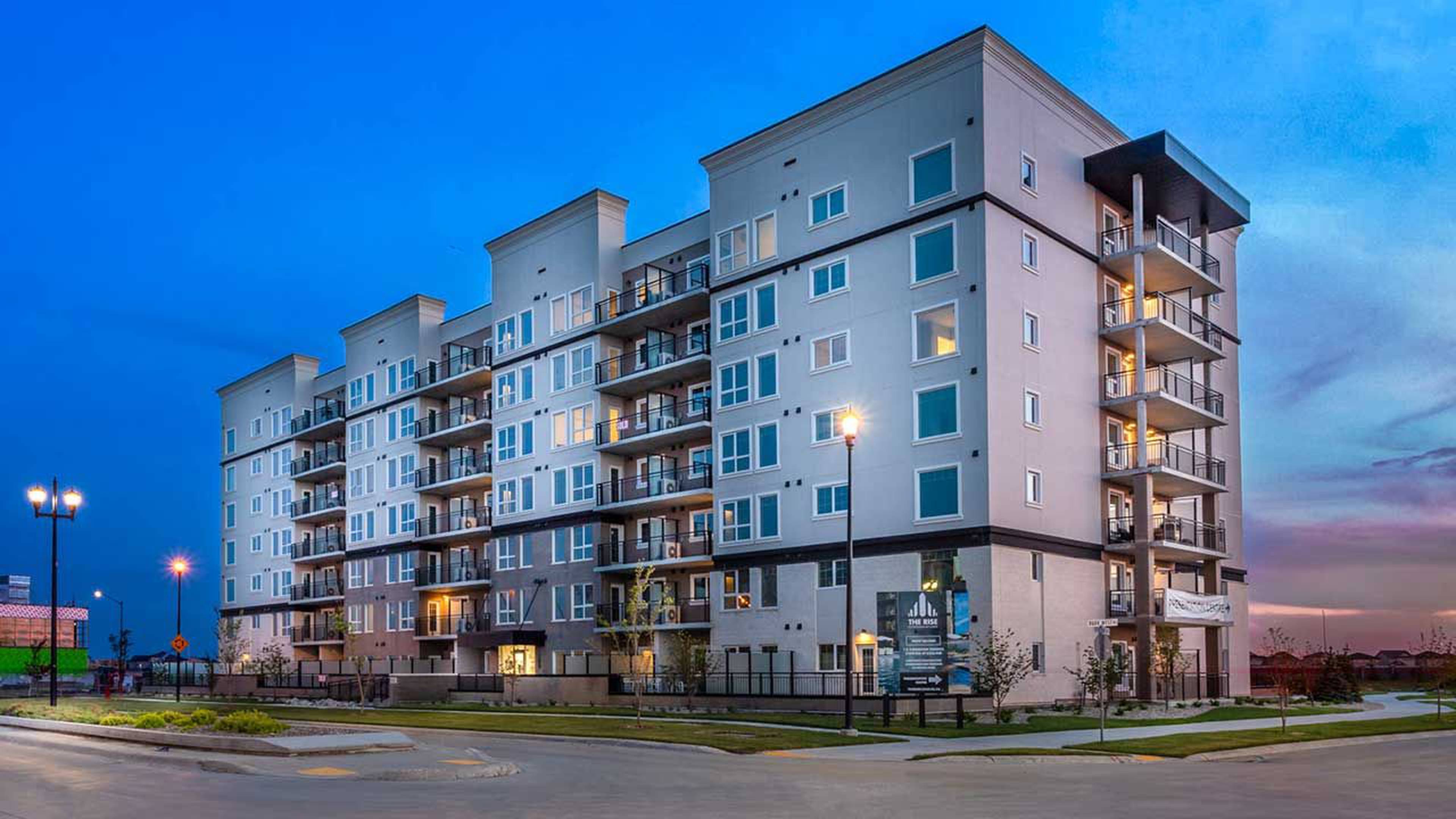 Located in the centre of Winnipeg’s south neighbourhood of Bridgwater, The Rise is a modern collection of concrete-constructed apartment-style condominiums. At seven storeys high, The Rise is the highest peak in the community. The Rise exceeds Manitoba Hydro PowerSmart requirements, making it a high-performing building that reduces energy bills and operating costs, extends equipment life, and reduces greenhouse gas emissions. Energy efficiency is a prime focus, with WaterSense-certified fixtures, 100% LED lighting, and environmentally friendly low-VOC paint in all units.